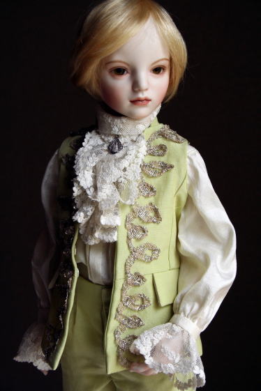 アンティークのレースやボタン、トリムを使い色にも拘ったこんな王子服なら