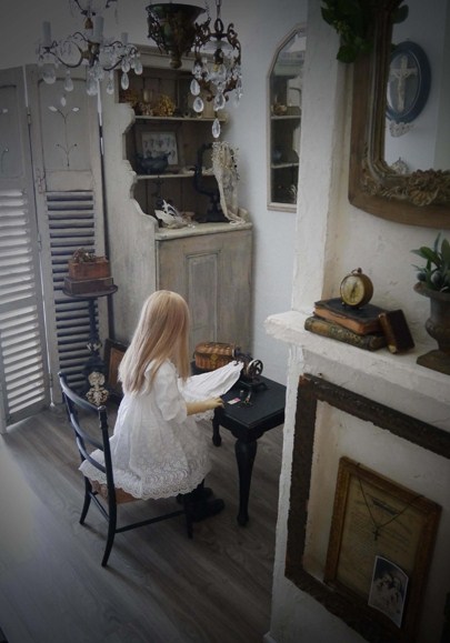 今までには無かったような人形作品集にしたいと思ってデザインを考えました。 その一つが背景となる庭や部屋もこだわってつくったことです。 人形のための部屋をセルフリフォームする一方で、ありそうでなかった、部屋やキャビネットに人形を飾っている写真も撮りました。 中には、ぬいぐるみさんと遊びだしてしまった子もいますが(笑) アンティークの人形サイズの家具との可愛い写真もあれば、 ダークカラーのシックな写真も。 人形がつぶやいているページ。写真をコラージュしているページ。 制作途中のお顔やボディもちょっぴり載せました。 少しでも楽しんで頂けるものにしたいとの思いで本の全てに全身全霊を込めました。 「あれっ、こんなところにも男の子が。」と思うようなところにも写真があるので、 見つけてあげてくださいね。 |