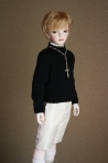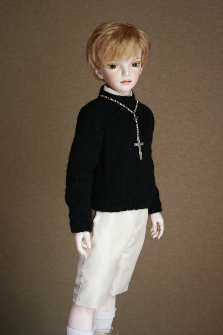 以前から着せてみたかったセーターを 初めて着せることができました。 ジャニーズ系で恰好良いと皆様から 思いがけないお言葉を頂戴した少年です。 |